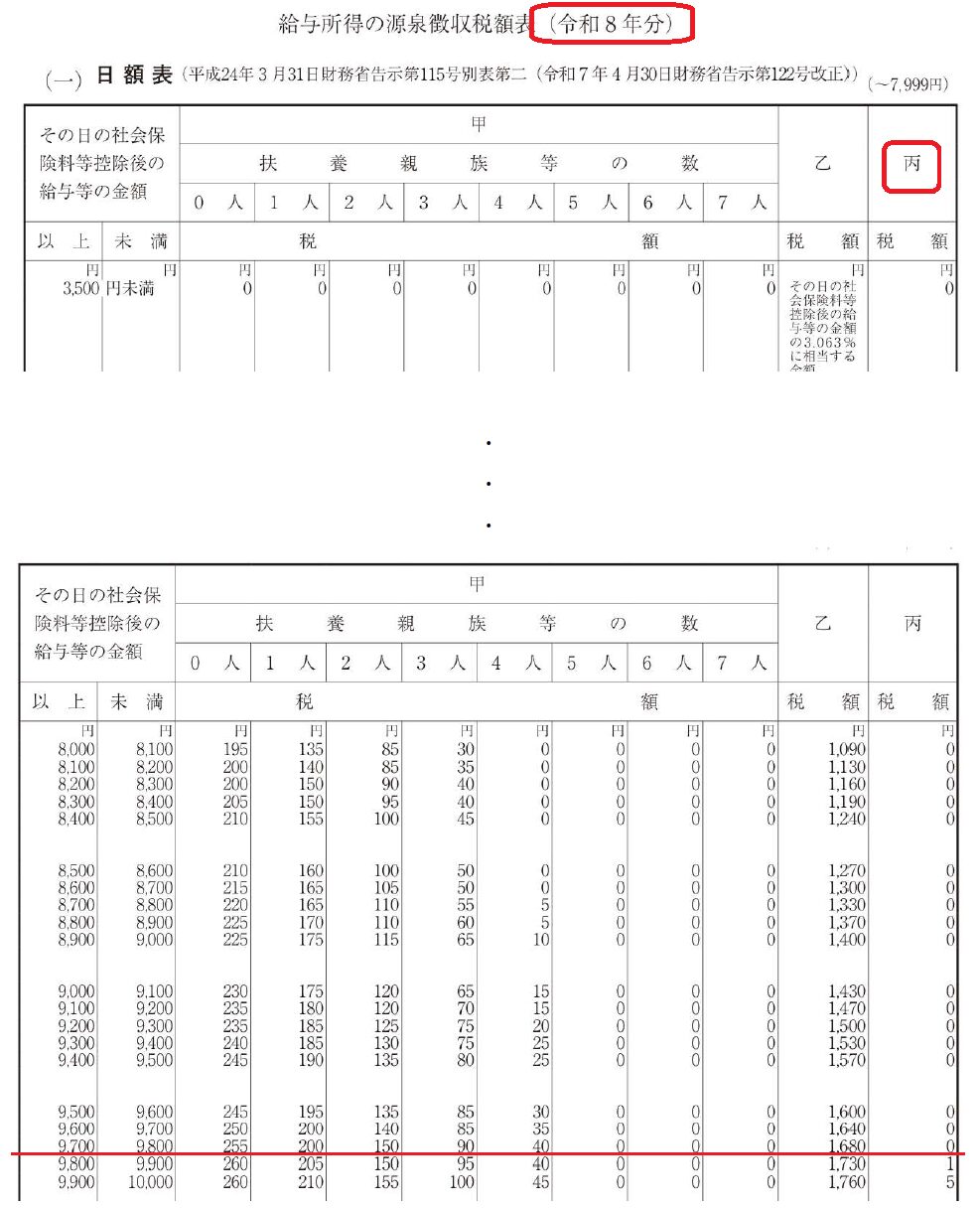 詳しくは令和8年分源泉徴収税額19Pをご確認ください。