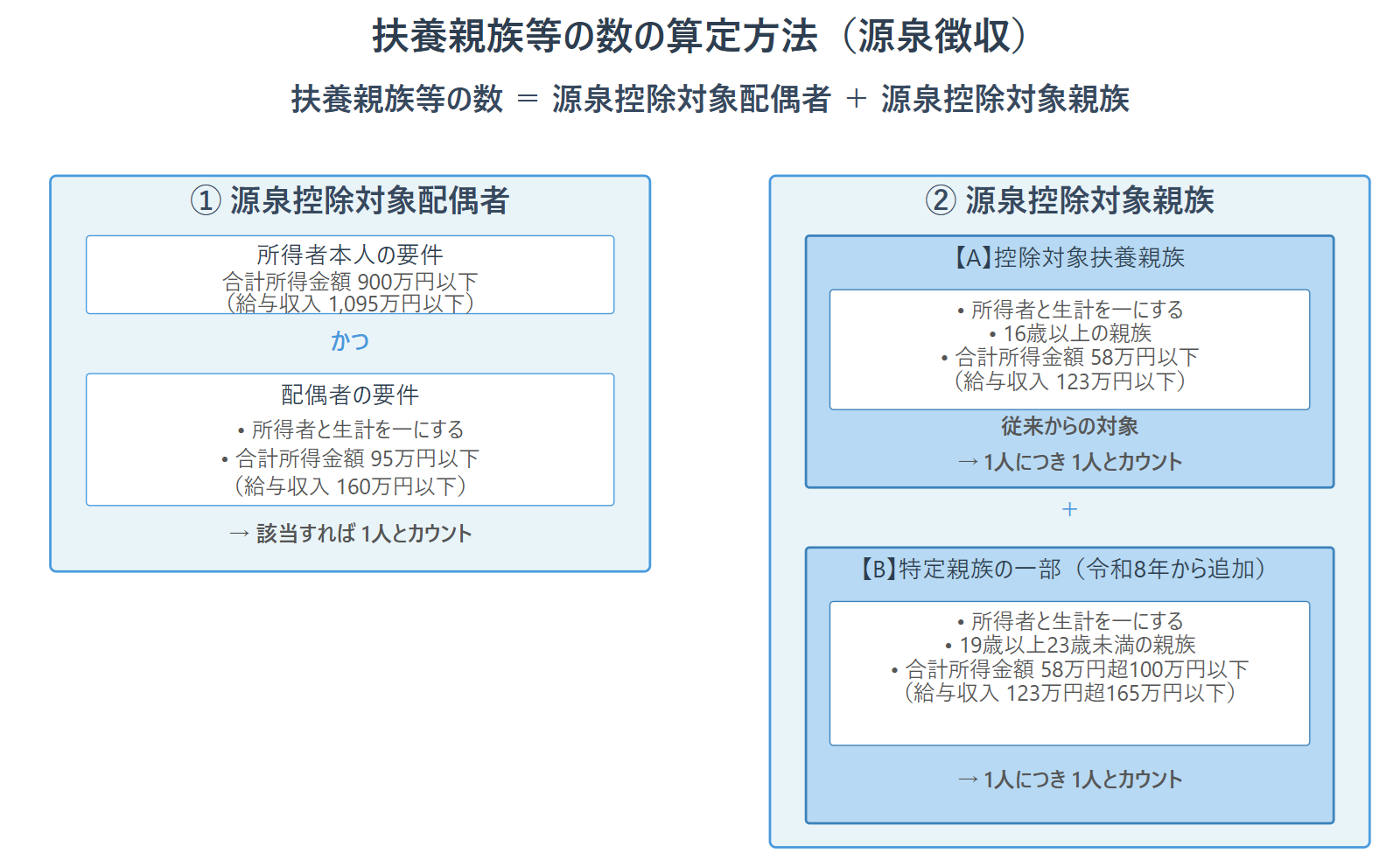 扶養親族等の数は「源泉控除対象配偶者」「源泉控除対象親族」の合計です。