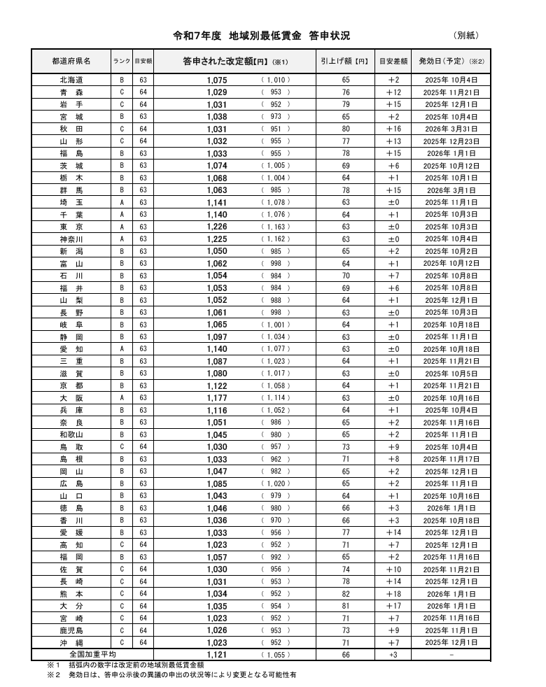 千葉県 1,076円→1,140円 令和7年(2025年)10月3日~