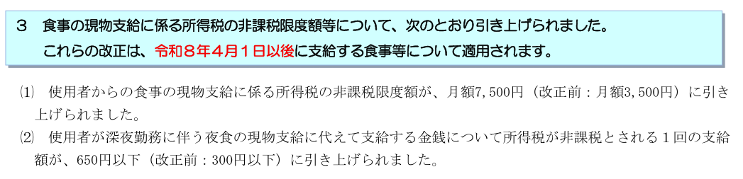 こちらも令和8年4月1日以後に支給する食事等から適用です。