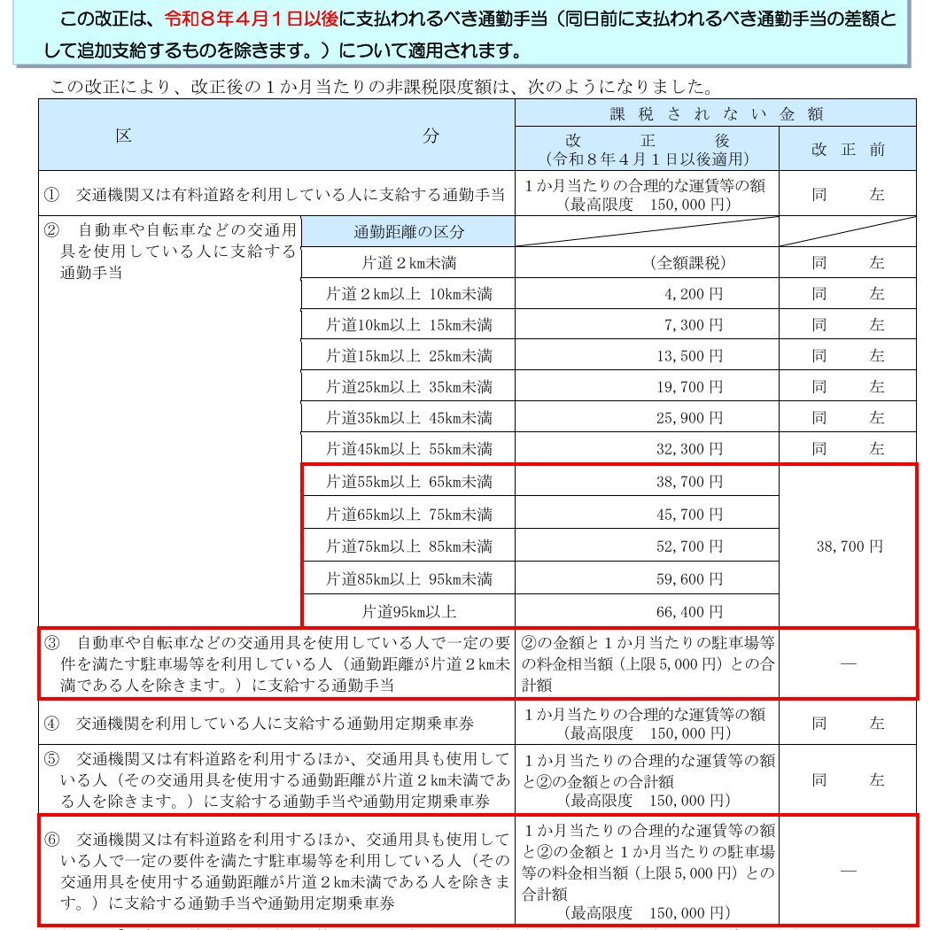なお、この改正は令和8年4月1日以後に支払われる通勤手当から適用されます。
