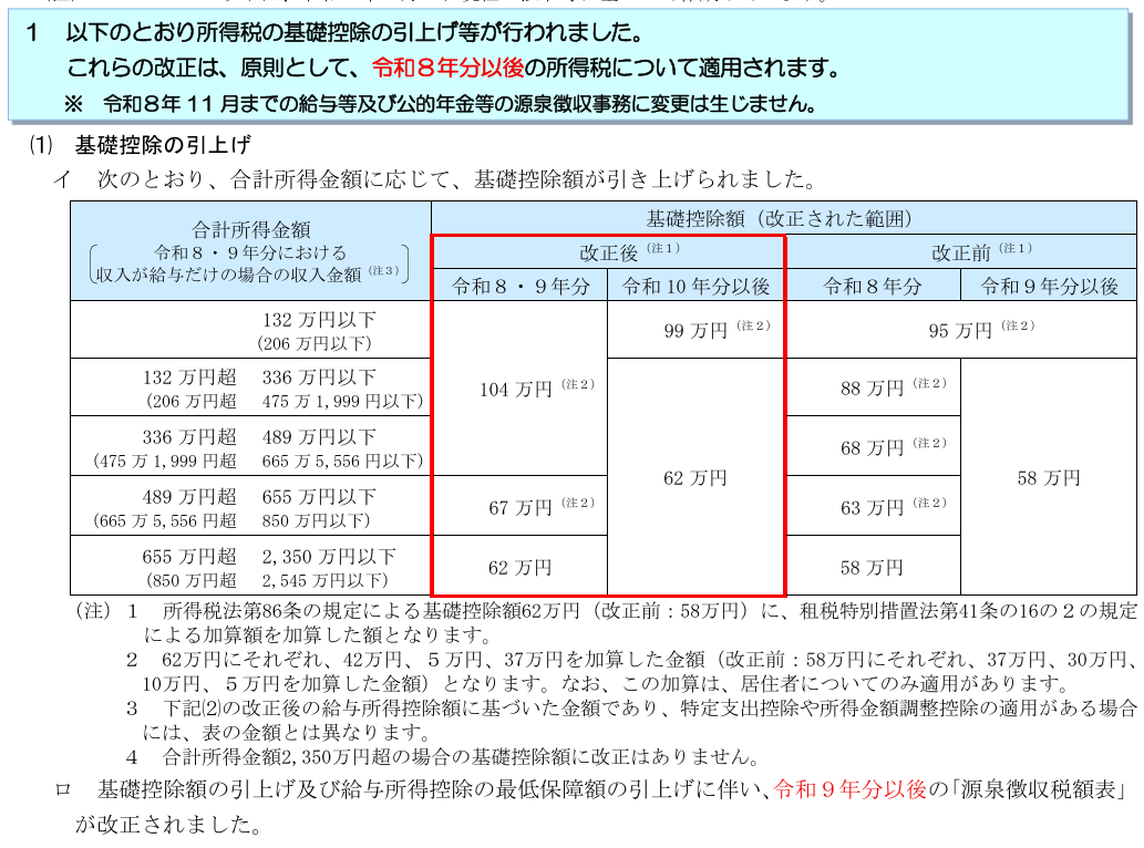 先日、国税庁から「源泉所得税の改正のあらまし令和8年4月」が公表されました。