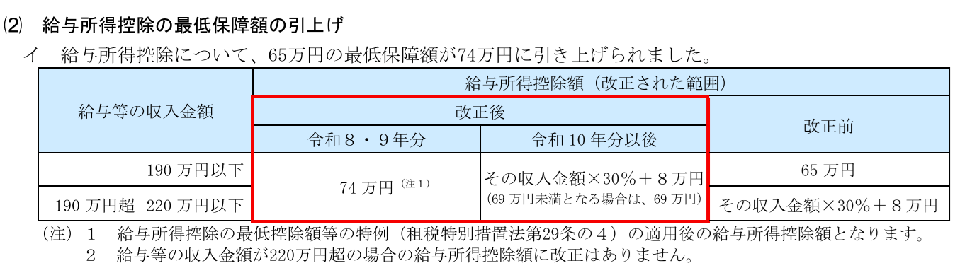 ・令和8年(2026年)、令和9年(2027年):178万円(基礎控除104万円+給与所得控除74万円)