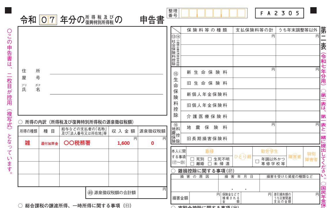 還付加算金は「雑所得」という区分で、こちらも事業所得とは別モノ。