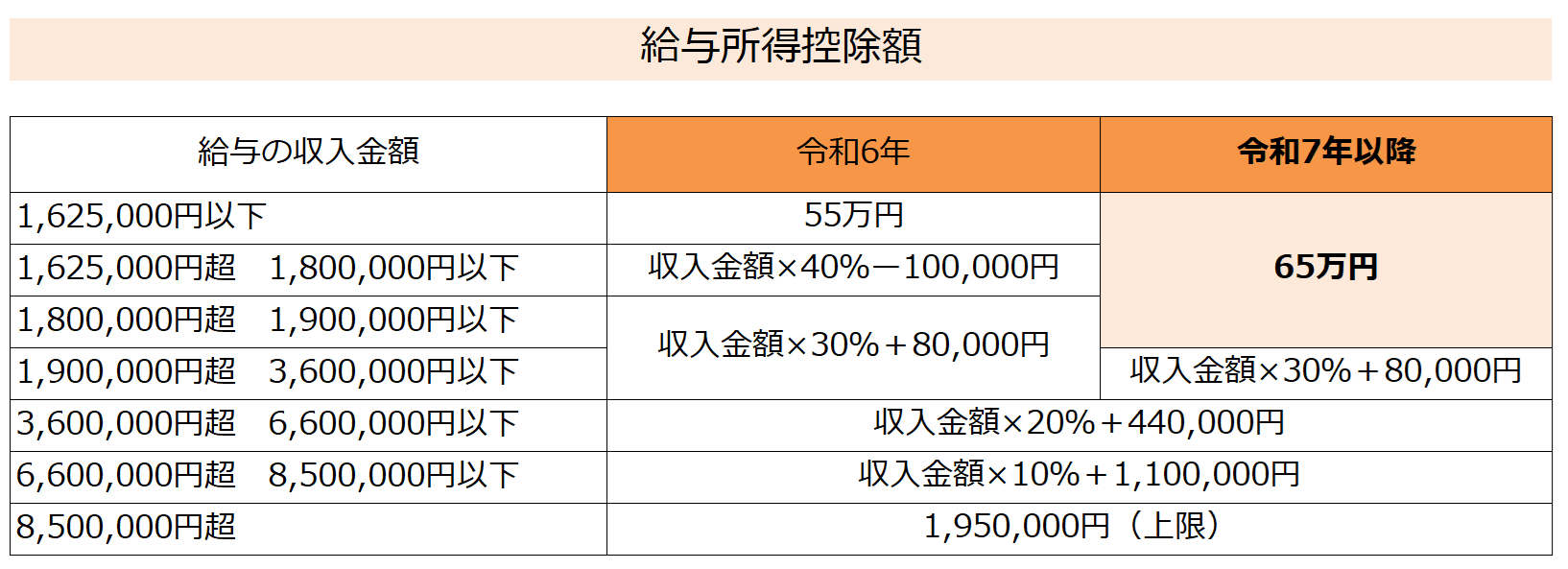 改正前(令和6年まで)と改正後(令和7年以降)の基礎控除額は、下記のとおりです。