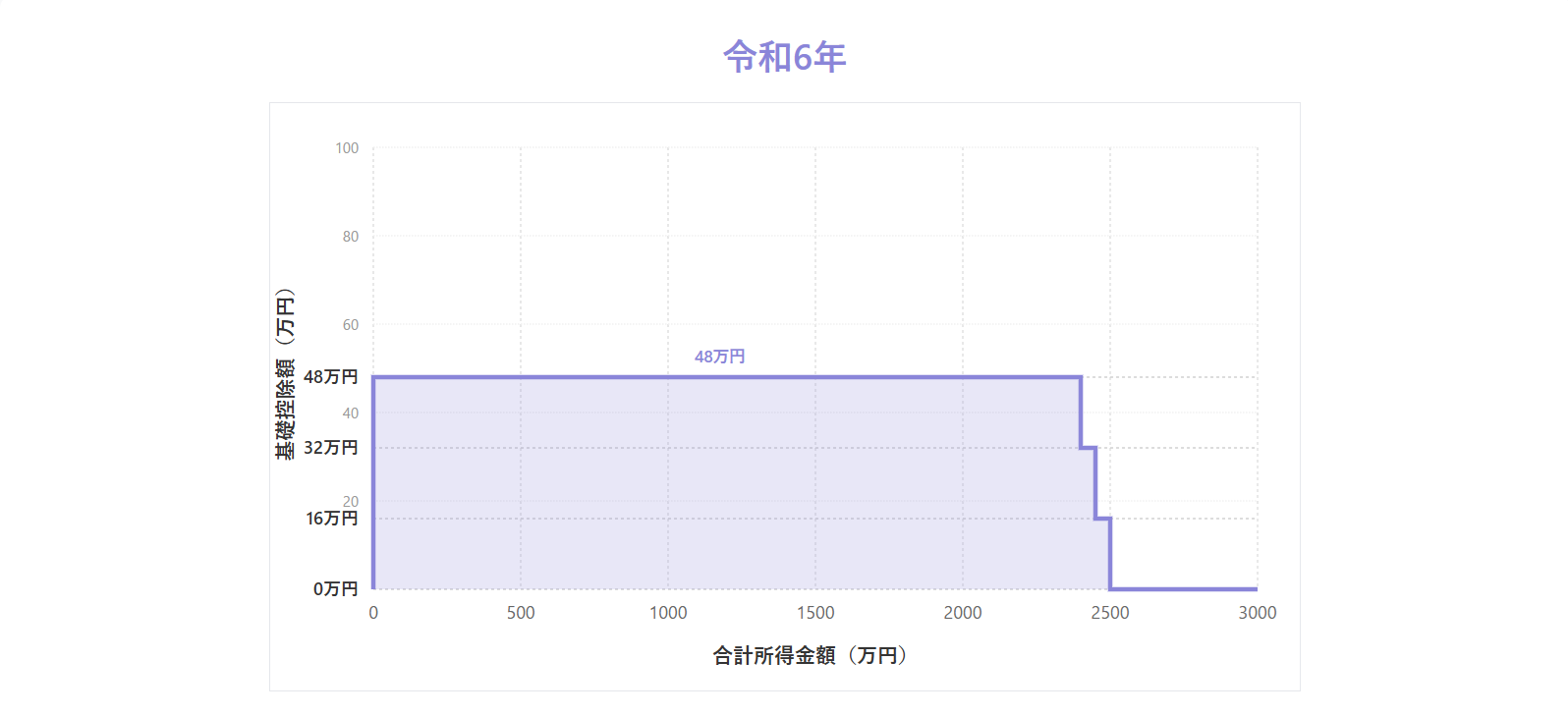 原則48万円で、合計所得金額が2,400万円を超えると段階的に控除額が減少し、2,500万円を超えるとゼロ円です。
