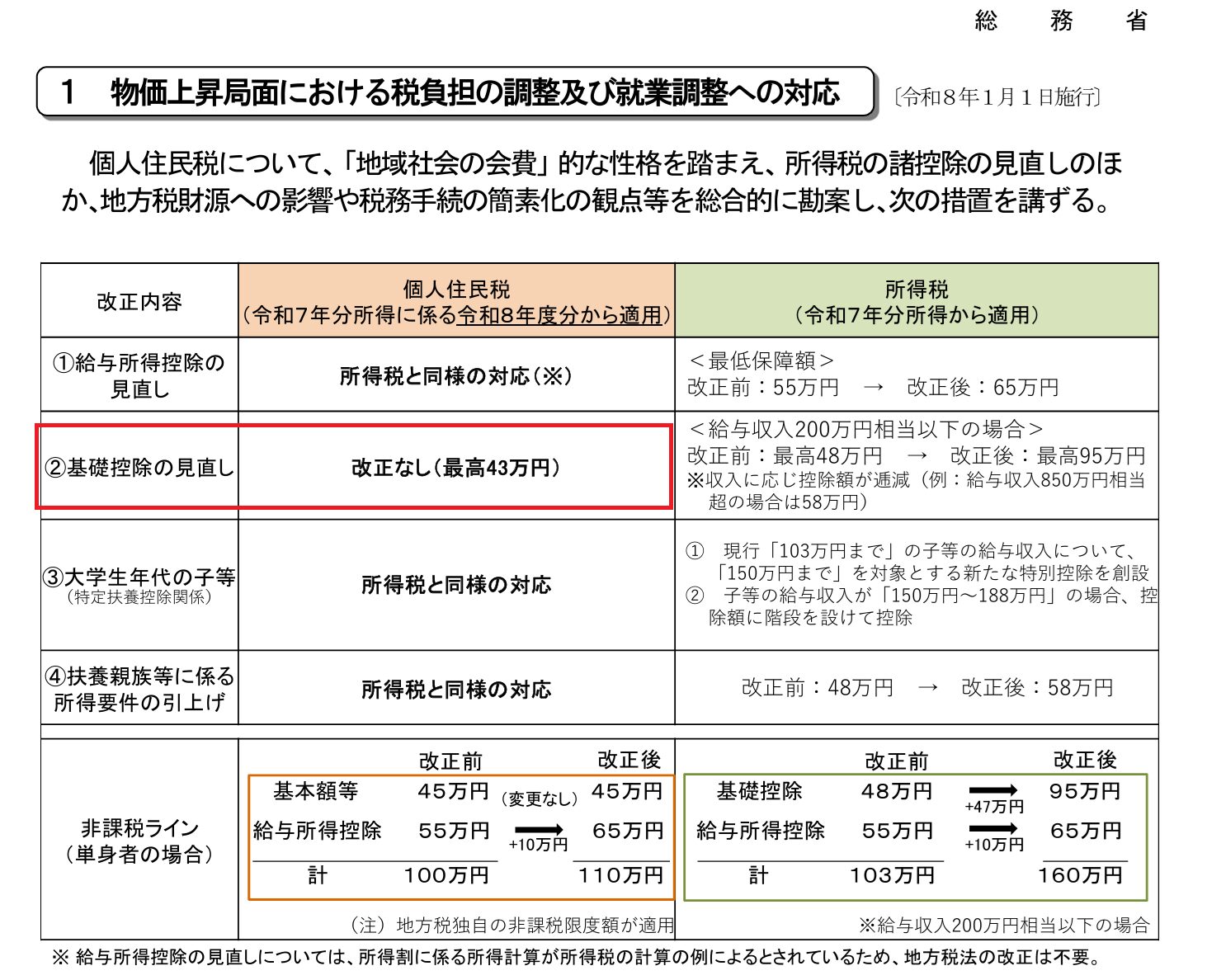 1点お気を付けいただきたいのが、今回の基礎控除額の改正、所得税だけのお話だということ。