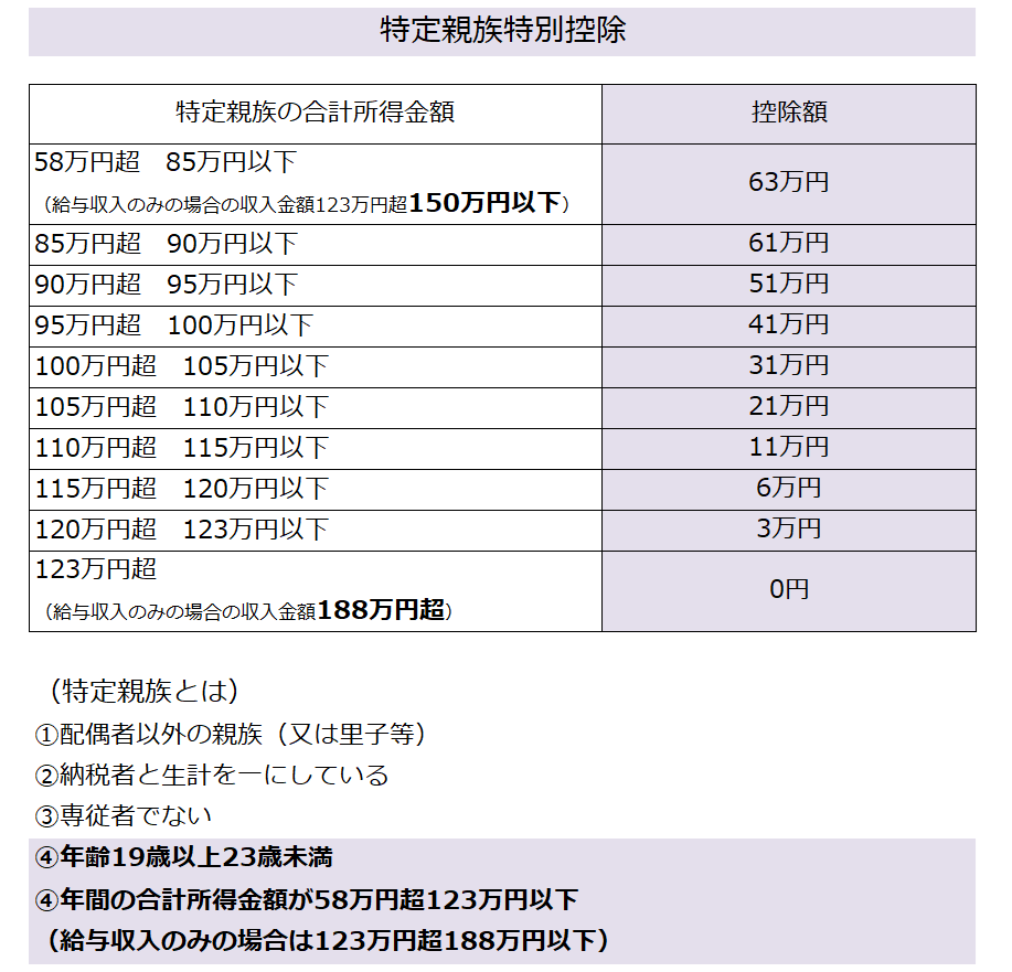 19歳以上23歳未満を扶養に:MAX63万円の控除を受けられる要件が年収103万円 以下→ 150万円以下に