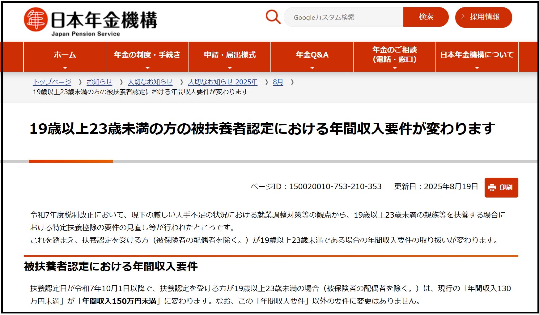 さらに、この年代に限って社会保険の扶養判定基準も150万円に引き上げられます。