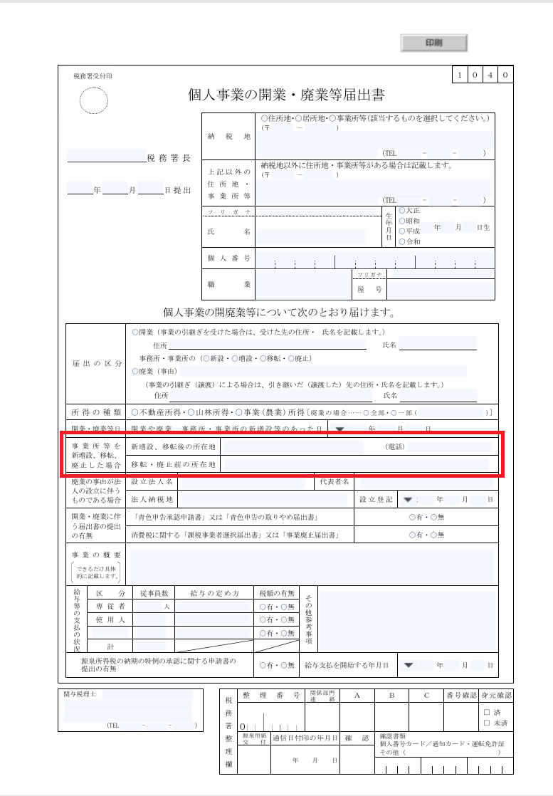 よって、自宅兼事務所の場合や自宅と事務所が別で事務所を引っ越した場合には提出が必要ですが、自宅と事務所が別で自宅だけ引っ越した、という場合には提出不要です。