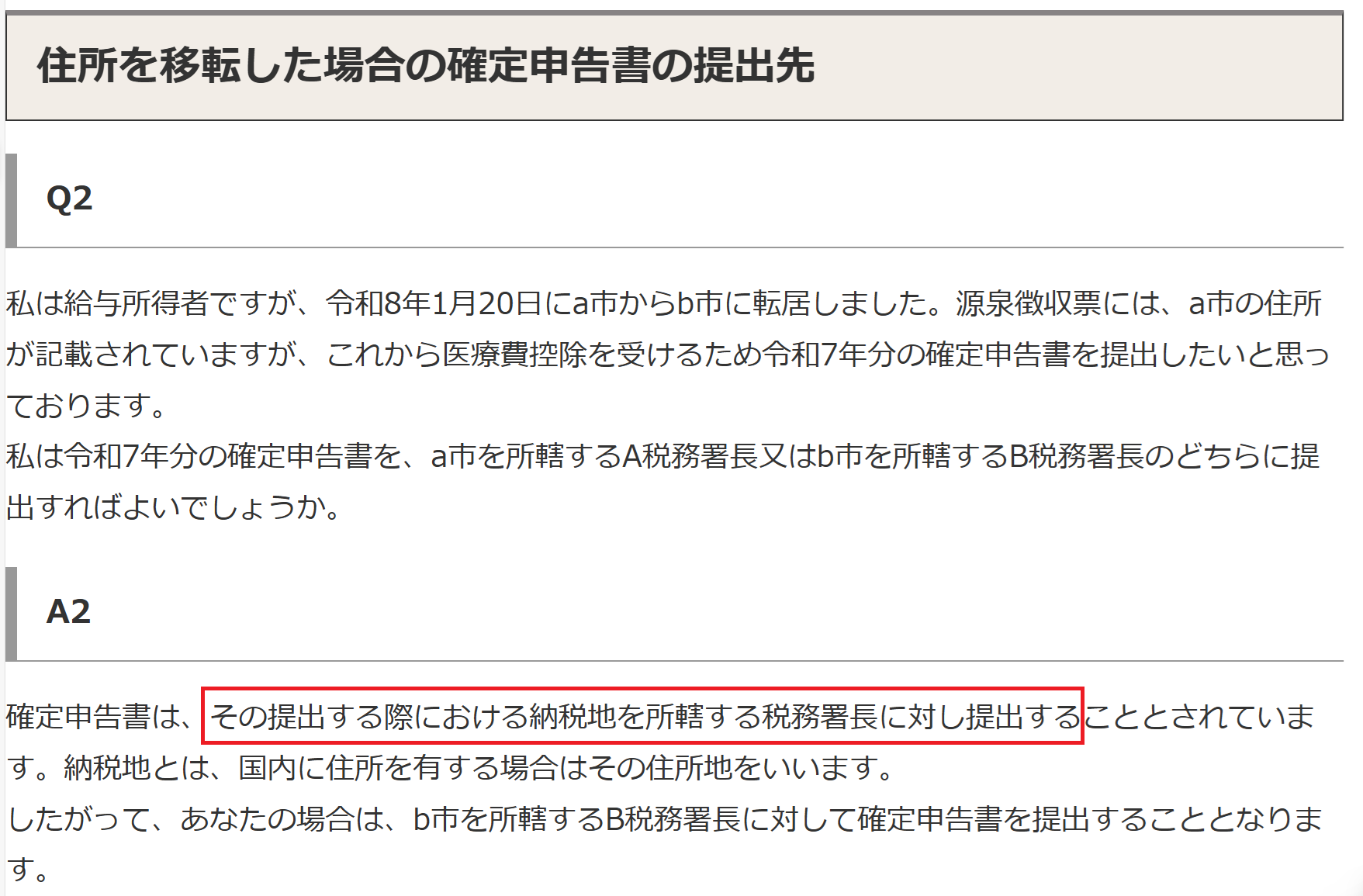 1月以降に引っ越した場合、確定申告書はどこの税務署に出せばよいのか?