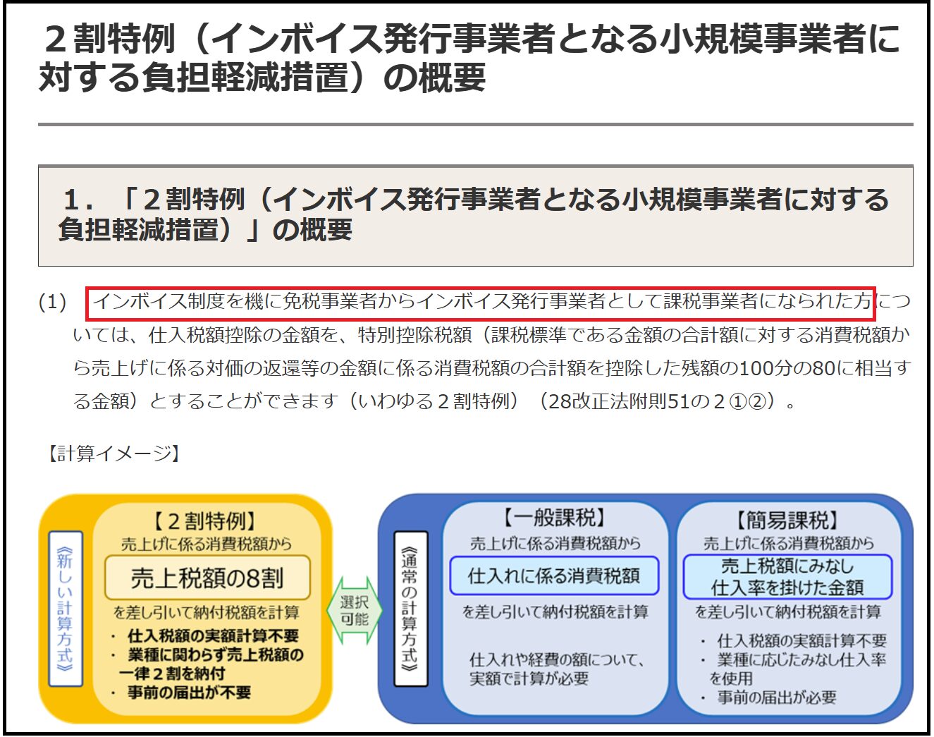 本来なら免税事業者なのに、インボイス制度があるからインボイス発行事業者(課税事業者)になった人だけが使える「2割特例」。