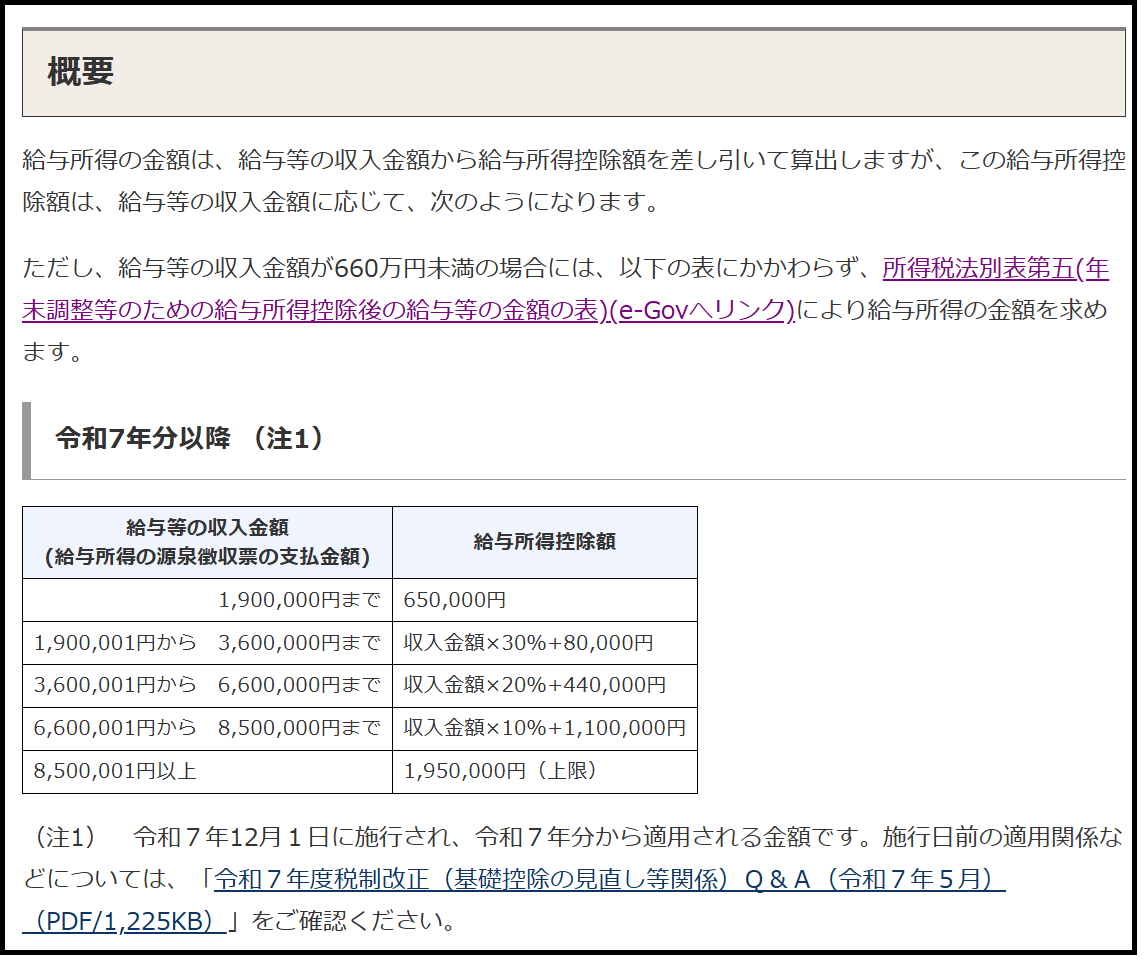 下限だけでなく、全体的に控除額が上がっているので多くの人にとって減税です。